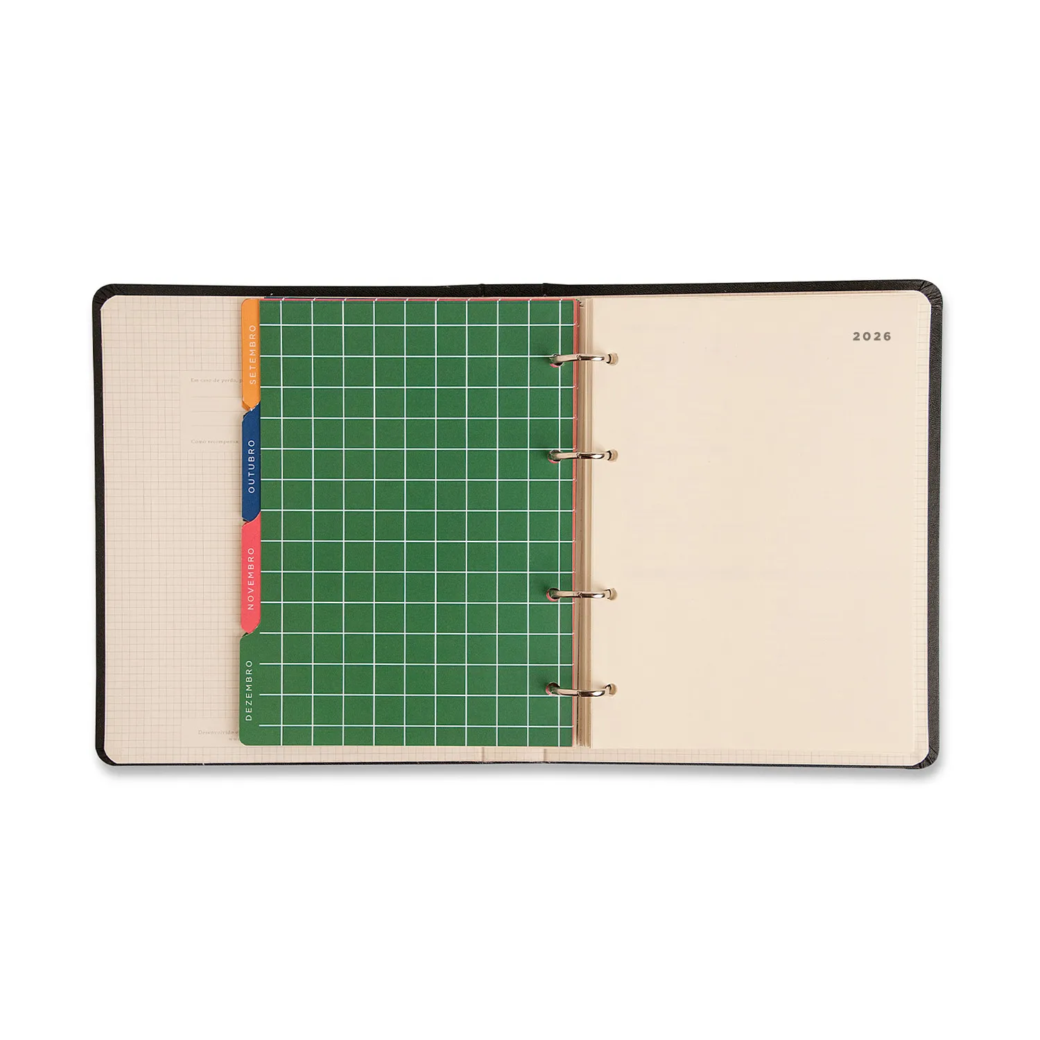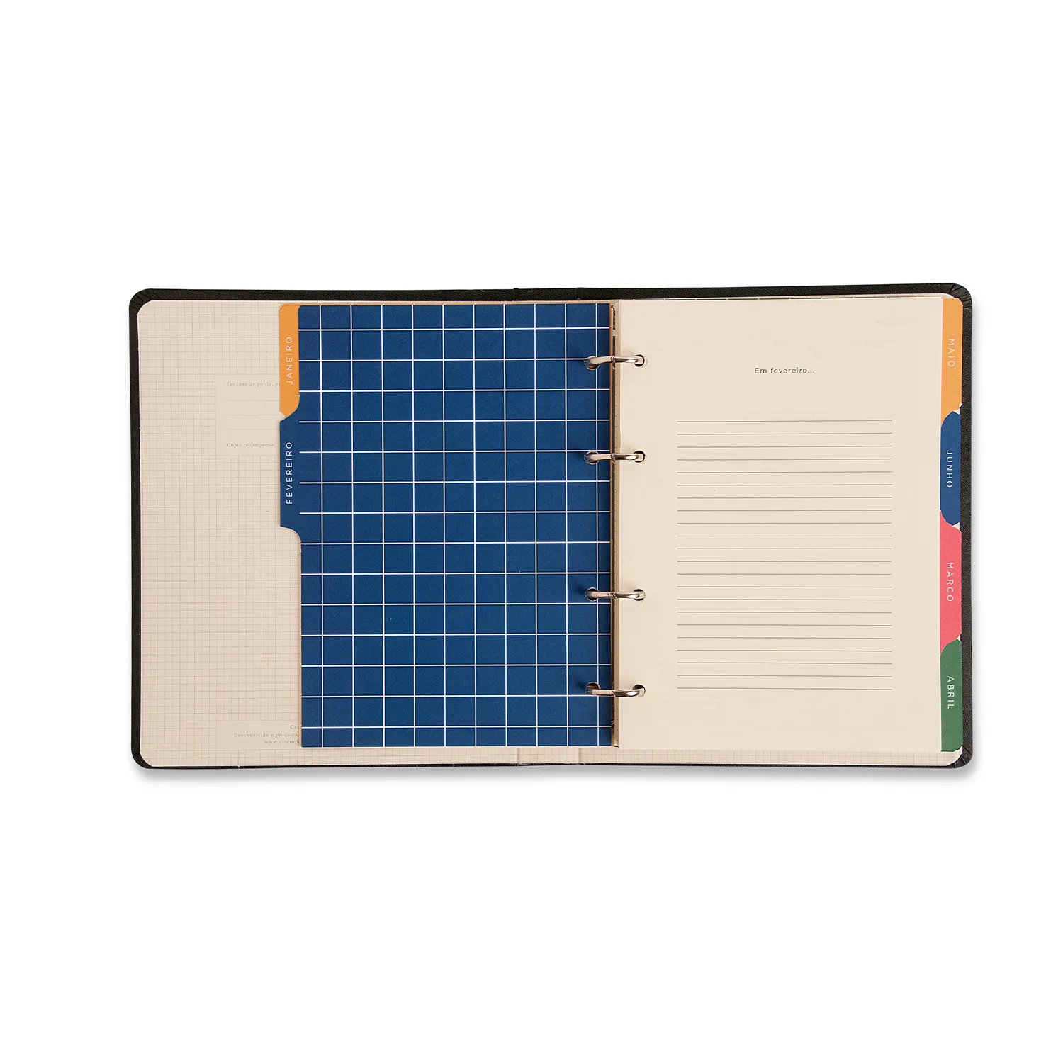 O sistema argolado facilita a abertura e possibilita personalizar o conteúdo conforme suas necessidades.