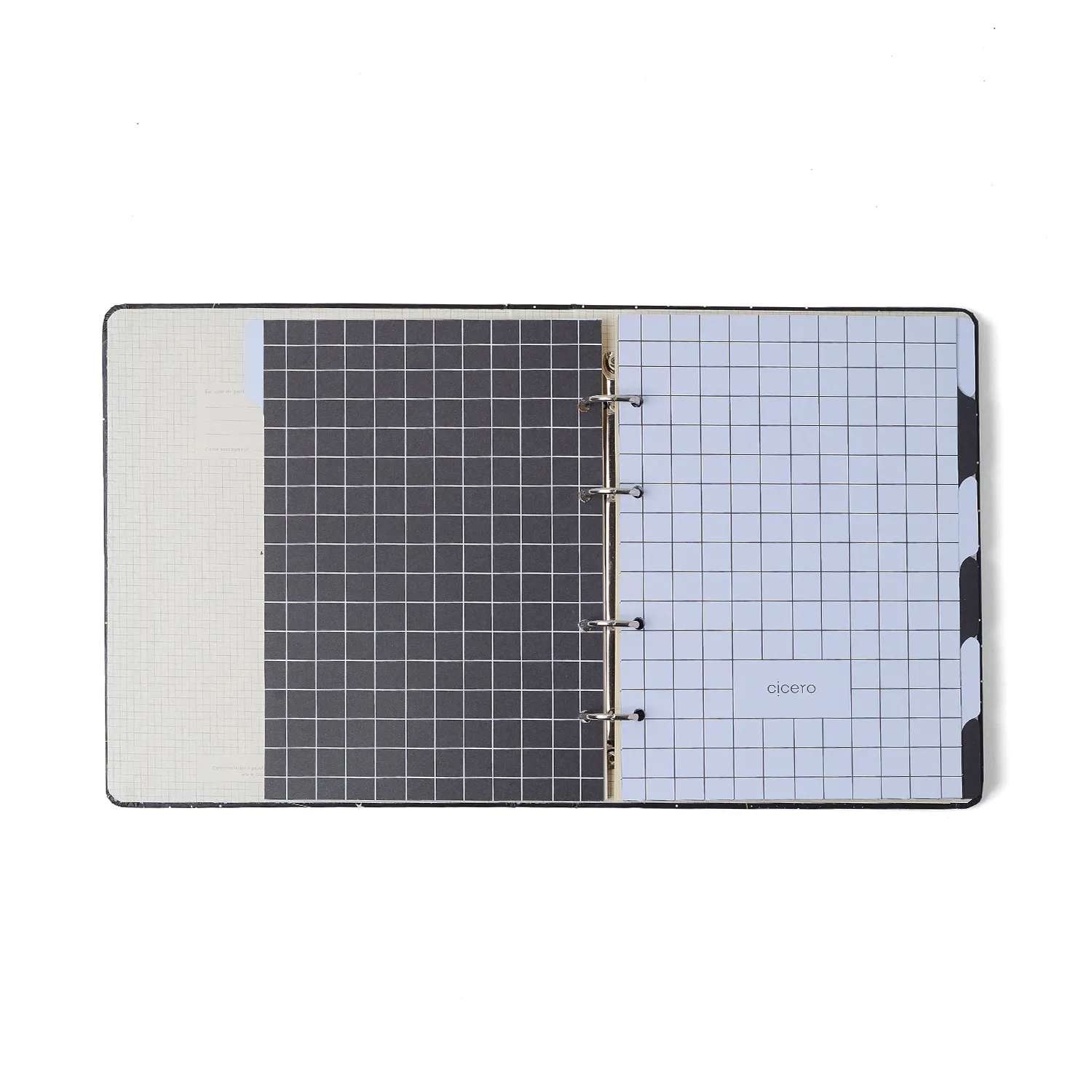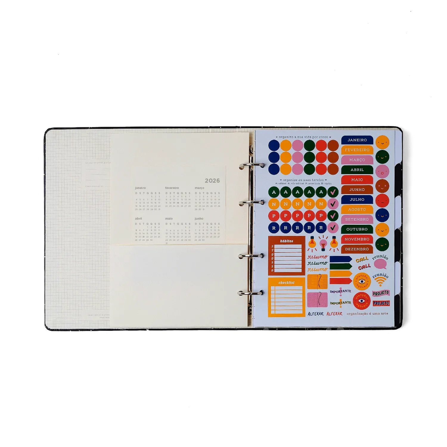 - 100 folhas em Papel Pólen®Natural 80 g/m2 para serem organizadas em 12 divisórias